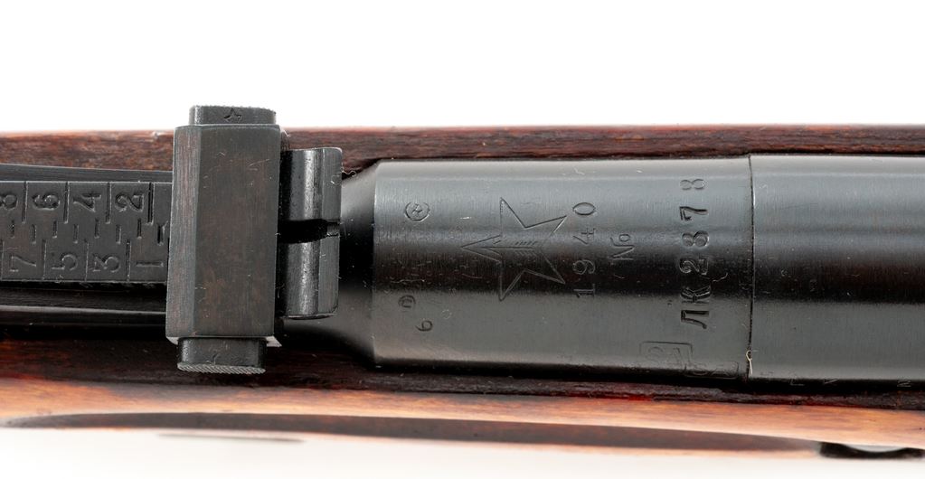 Finnish marked Model 91/30 Mosin-Nagant Bolt Action Rifle, by Tula Arsenal, #LK2878, 7.62x54R cal., 28.75'' barrel, blued finish, birchwood stock, hooded post front sight, adjustable tangent rear sight, with cleaning rod and ''SA'' marked sling. Barrel shank with ''Tula Arsenal'' stamp and dated ''1940''; left side with double stamped ''SA''. Right side of buttstock with ''Tula Arsenal'' stamp and other small cartouches that are not completely legible. Visibly numbered metal parts are matching. No visible import marks. Condition overall is very good with approx. 95%+ blued finish remaining on metal surfaces; main factory lettering on the metal is clear. Wood with an added coat of varnish that has flaked and thinned considerably on the handguard, the balance is mostly present with some darkening to the wood after application; tip of forend with an arsenal repair; otherwise showing normal shallow handling marks, etc. Bolt handle with shallow ''waffle mark'' type impressions. Action is smooth; grooves with some very minor frosting; rifling is near excellent. Sling shows normal light age and wear with a clear ''SA'' and ''T'' stamp to the backside. Est.: $300-$500. (C&R)