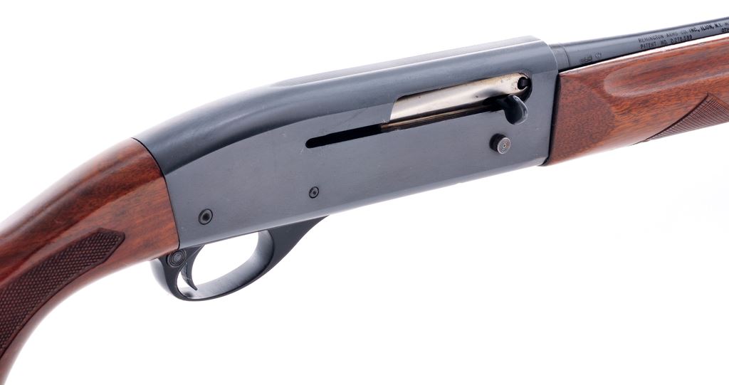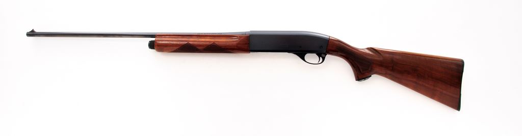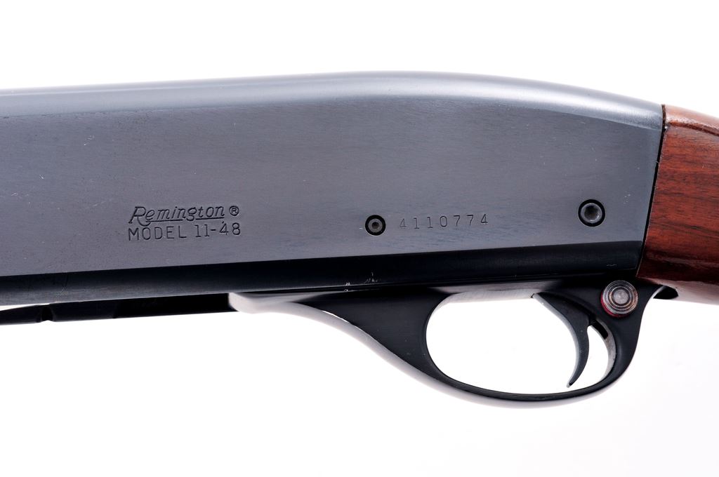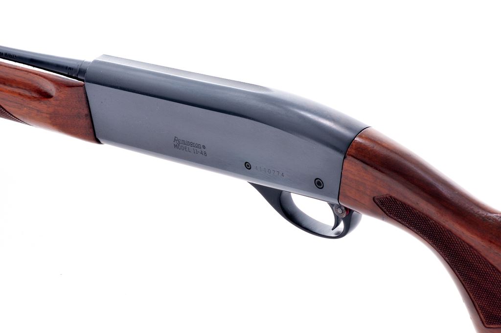 Remington Model 11-48 Semi-Automatic Shotgun with .410 Bore, #4110774, 25'' plain barrel, 3'' chamber, full choke, blue finish, checkered pistol grip walnut stock and forend, grooved black composite Remington buttplate, with silver bead front sight. Barrel date code is ''OA'', mfg'd in 1954. Approx. 99% factory blue finish remains and metal surfaces rate as near excellent, showing a few small handling marks, most noticeable on the trigger guard. Factory lettering is sharp. Wood rates as very good with scattered shallow handling marks, with the most noticeable impression being along the bottom edge of the buttstock. Checkering is mostly clean and shows one small flat spot at the forend. Excellent action, bore is bright but does have a few spots of pitting approx. 3'' down from the muzzle and what looks like minor peppering at about the mid-point. LOP is 13-3/4''. Est.: $300-$500. (C&R)