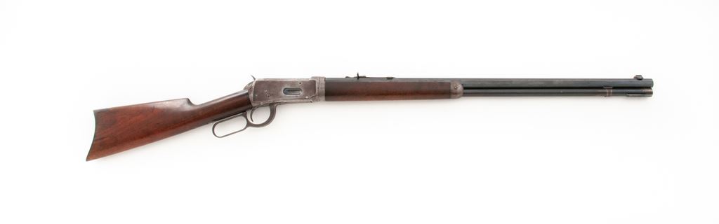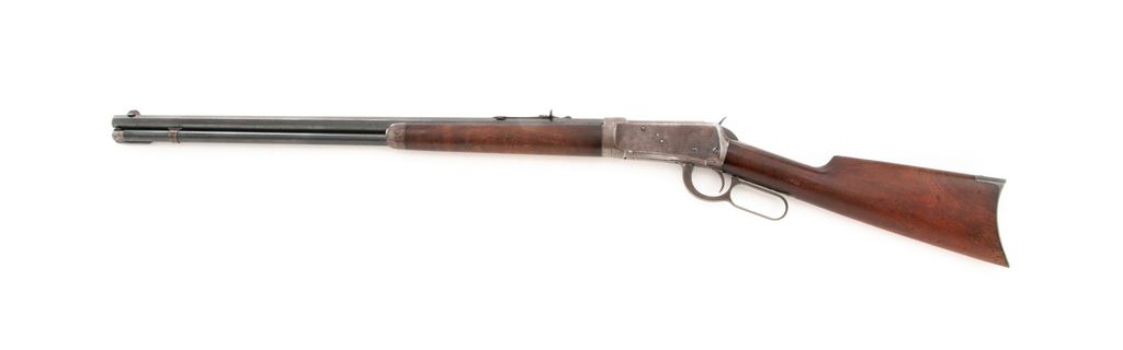 Winchester Model 1894 Lever Action Takedown Rifle, #368289, .25-35 cal., 26'' octagonal barrel, blue finish, walnut stock and forend, brass bead front and standard rear sight. Mfg'd 1906. Condition is very good. Barrel and mag tube retain approx. 92% blue; frame and receiver extension about 40% thinning blue. Stock with light general pressure dings and oil darkening, but no losses to either forend or stock. Good action, fine bore. Est.: $500-$750. (C&R)