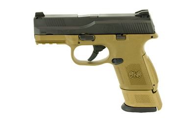 FN America, FNS-9 Compact, Striker Fired, Semi-automatic, Compact Pistol, 9mm, 3.6" Barrel, Polymer Frame,FDE/Black Finish, Fixed 3-Dot Sights, Non-Manual Safety, 1-12Rd & 1-17Rd, Fired Case