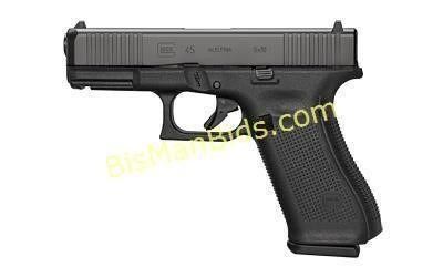 Glock, 45, Striker Fired, Compact Size, 9MM, 4.02" Marksman Barrel, Polymer Frame, Matte Finish, Fixed Sights, 17Rd, 3 Magazines, Front Serrations, Ambidextrous Slide Stop Lever, Flared Mag Well, nDLC Finished Slide and Barrel, No Finger Grooves