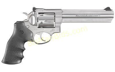 Ruger, GP100, Revolver, Double Action, 327 Federal Magnum, 6" Barrel, Steel Frame, Satin Stainless Finish, Hogue Monogrip Grips, 7Rd, Adjustable Rear Sight & Ramped Front Sight