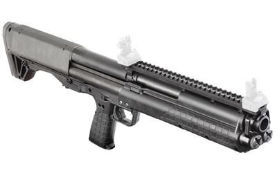 The KSG™ is no ordinary tactical shotgun. Its dual tube magazines hold a dozen 3 inch, 12 gauge shells (plus one in the chamber), with the flexibility of switching between various projectiles. A patented downward ejection system makes it truly ambidextrous, while its 26.1 inch overall length, 18.5 inch cylinder bore barrel and 6.9lbs of weight make it is as compact as legally possible.