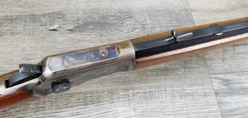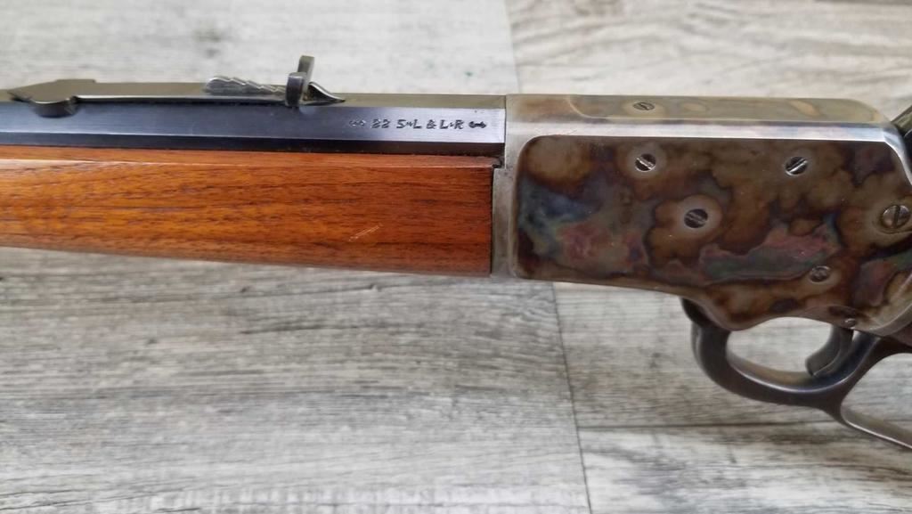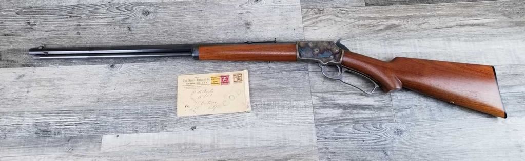 VIVID CASE COLORING ON RECEIVER. 98% ORIGINAL BLUE ON BARREL AND MAG TUBE REMAIN. COMES WITH ENVELOPE ORIGINALLY SENT WITH GUN DATED "APRIL 14TH 1931". BRIGHT, SHINY, MINT BORE. MUSEUM QUALITY.