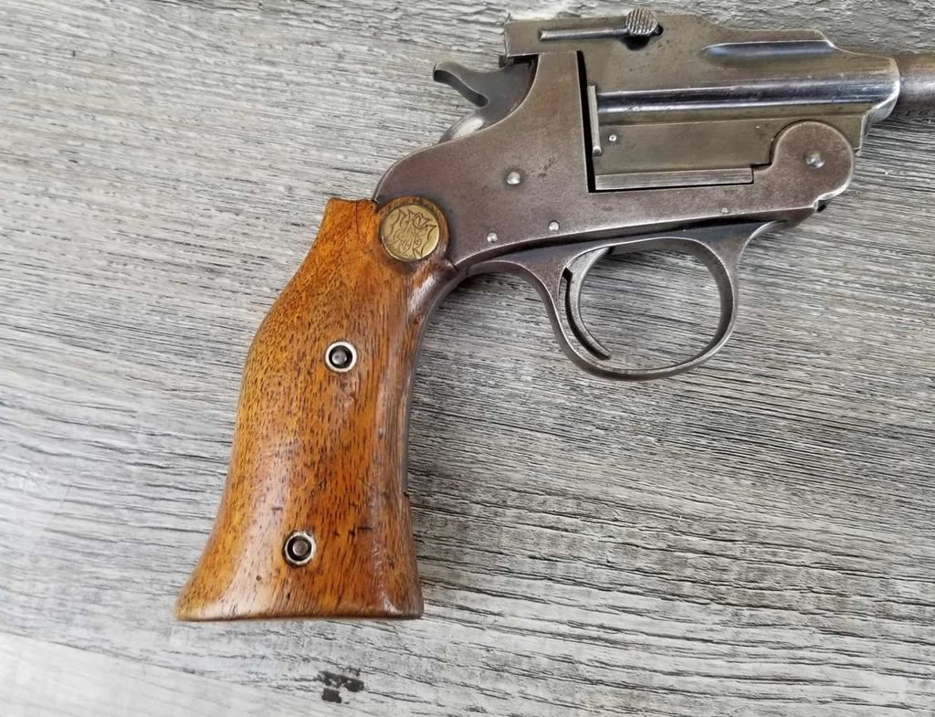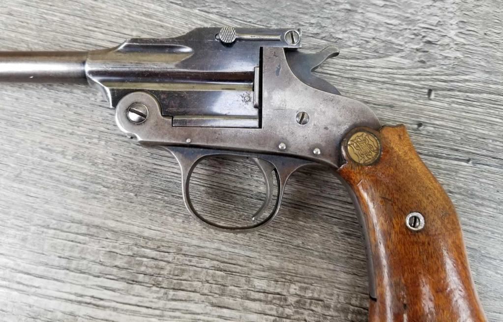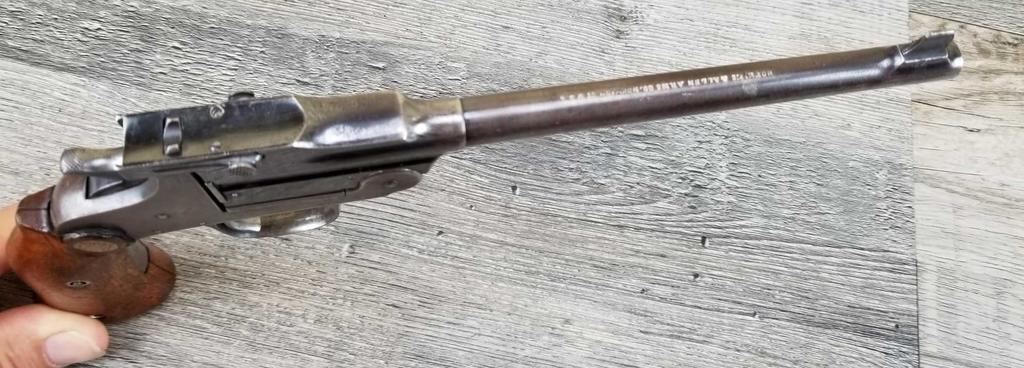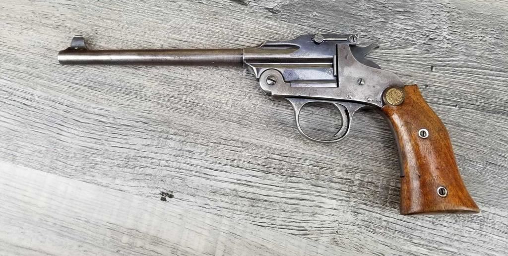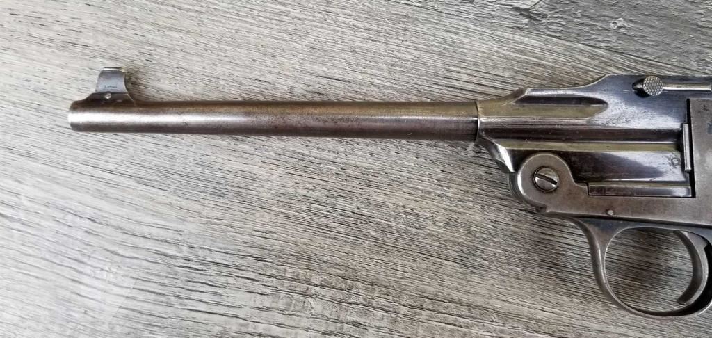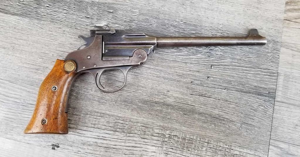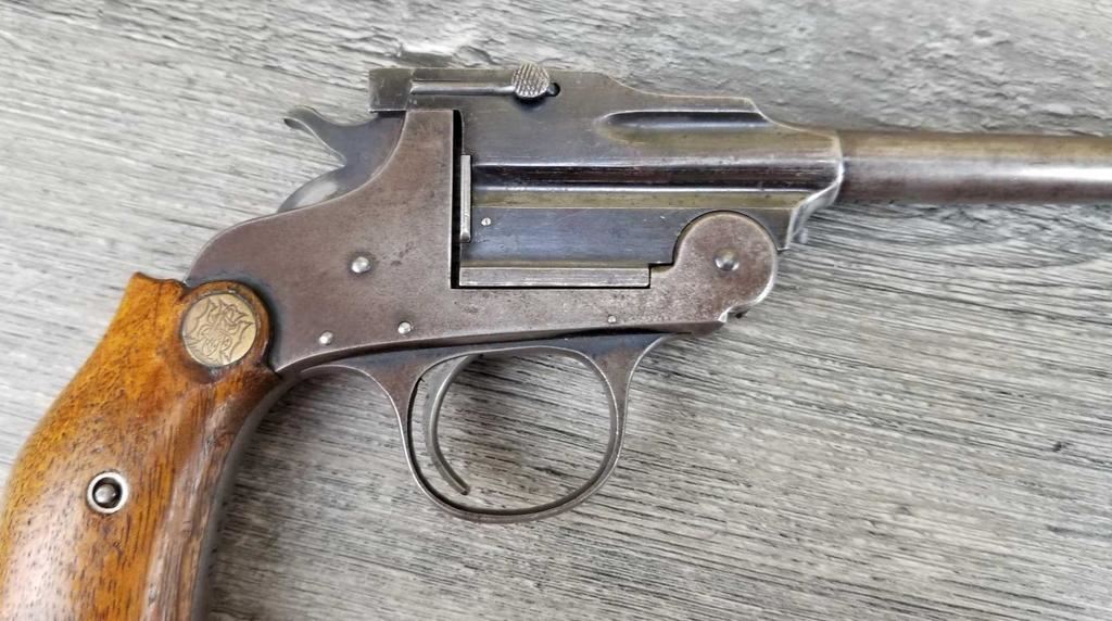 BREAK TOP. SINGLE SHOT. SIMILAR TO SMITH WESSON CAMP PERRY. BORE IS FAIR.