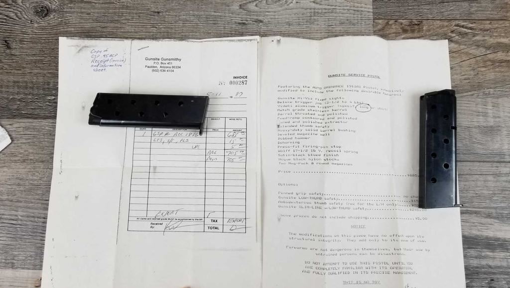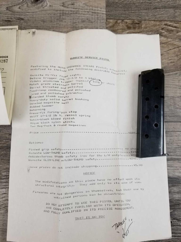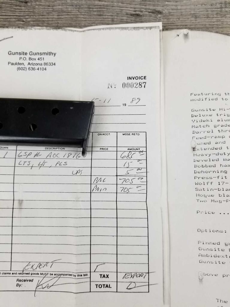 A GUNSITESERVICE PISTOL. BUILT IN 1989. HAVE COPIES OF ORIGINAL WORK DONE.