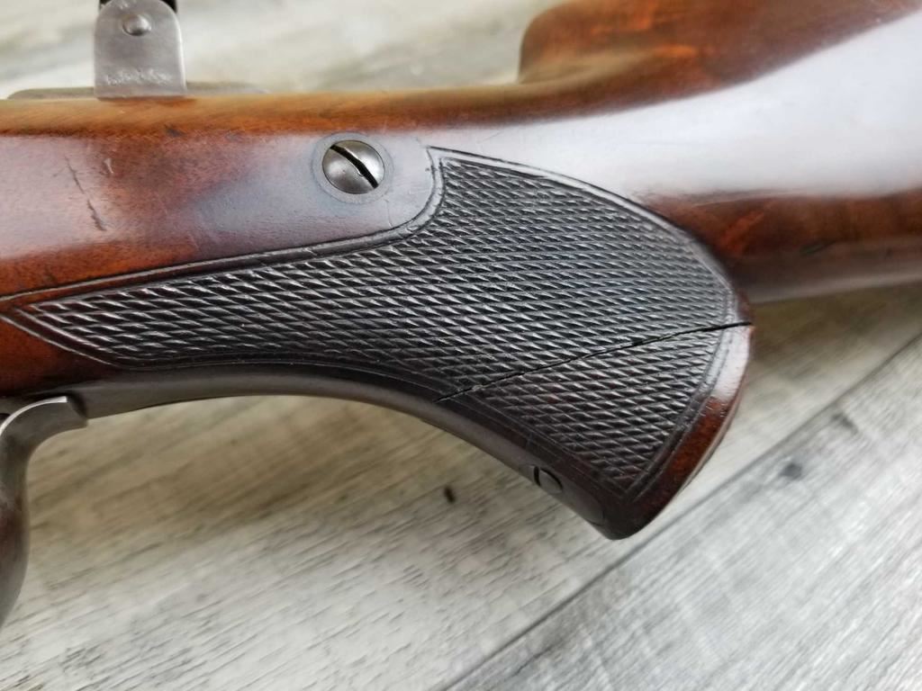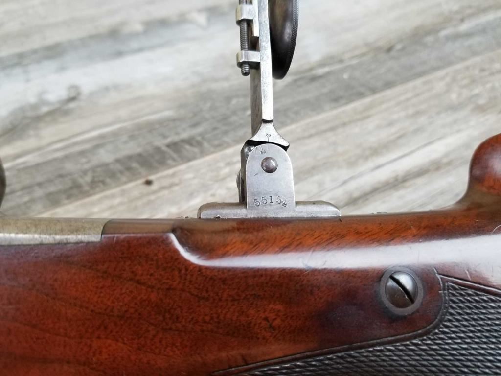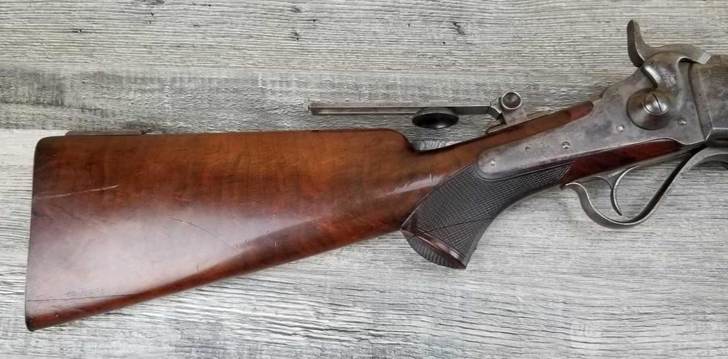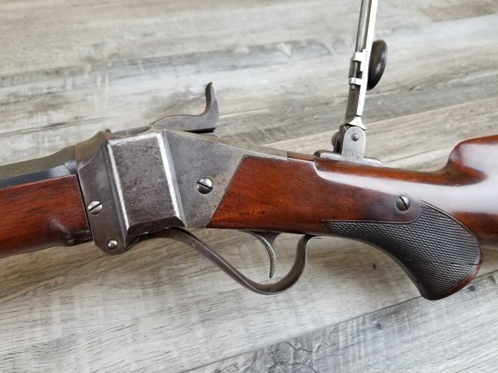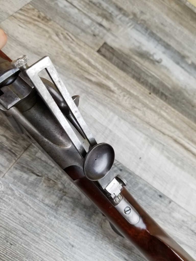 VINTAGE REAR SIGHT. DOES HAVE CRACK IN PISTOL GRIP. SOME PITTING ON BARREL. TRACES OF ORIGINAL CASE COLORING ON RECEIVER. BORE IS VERY GOOD.