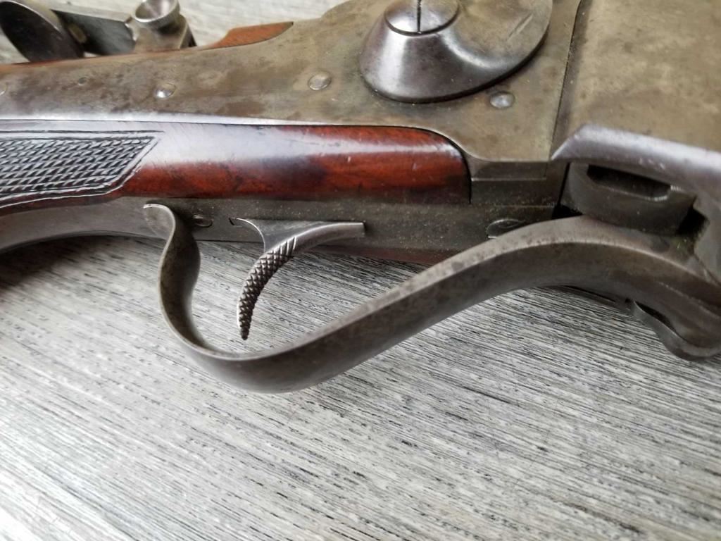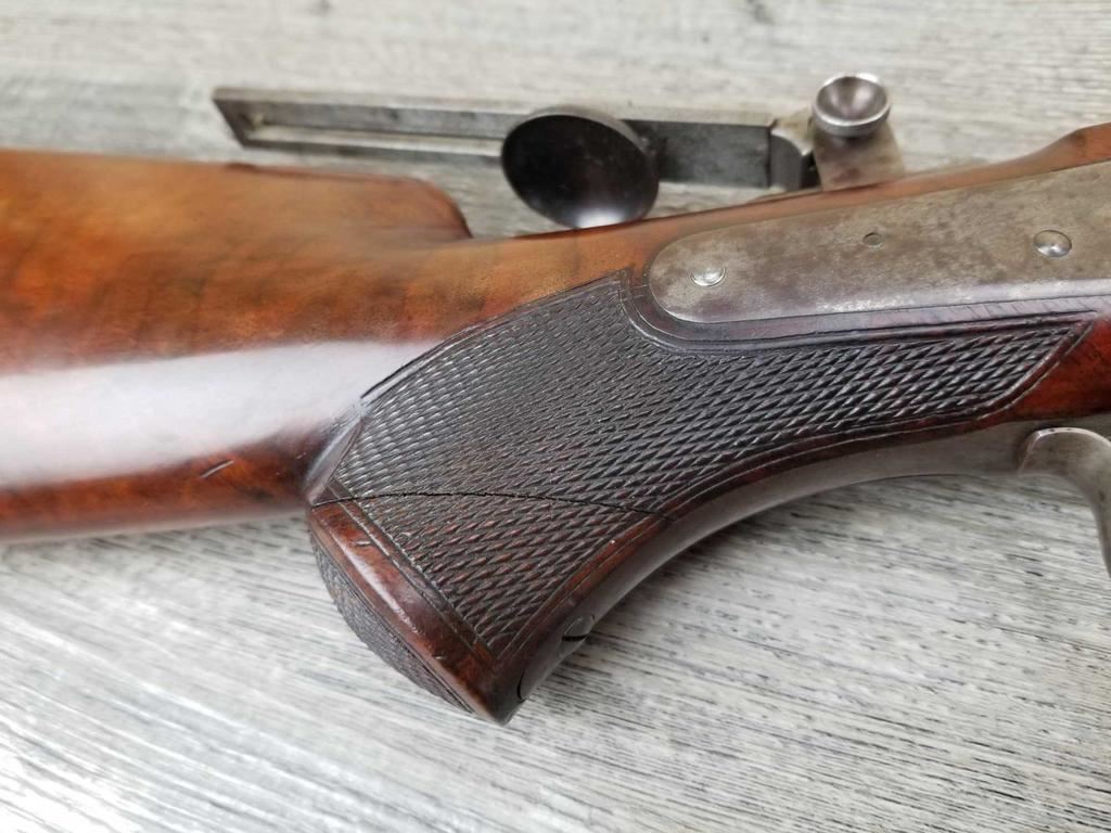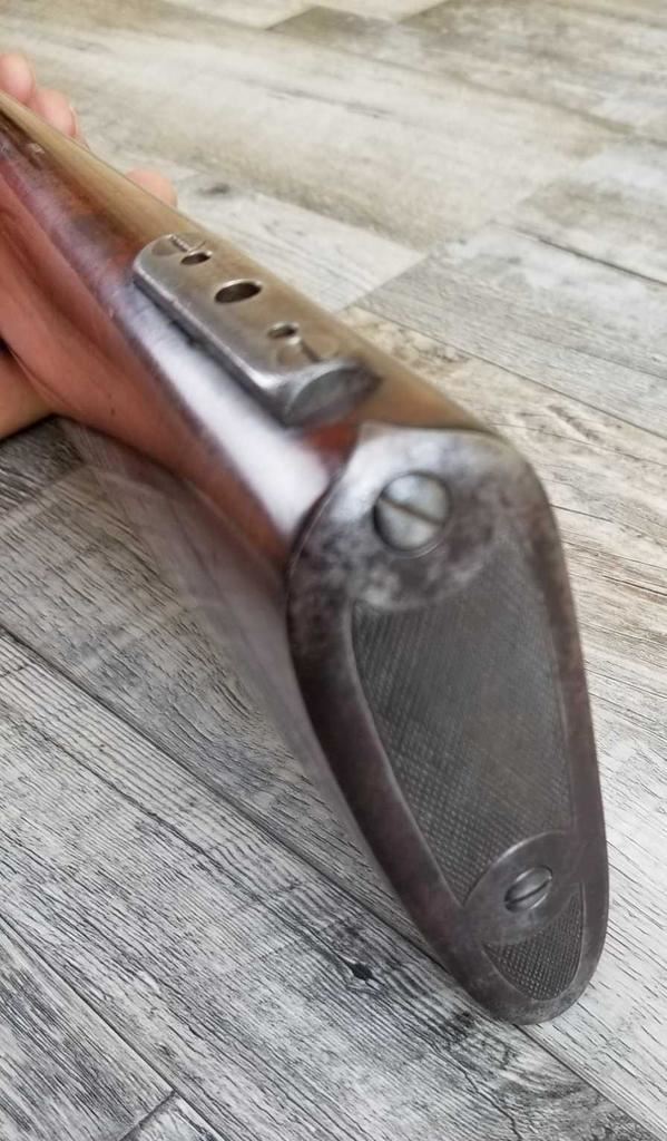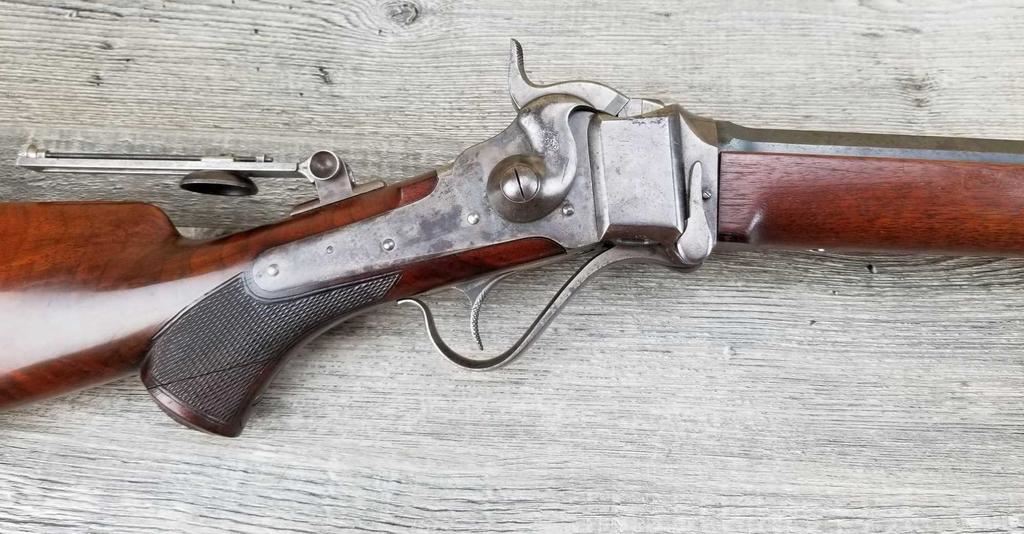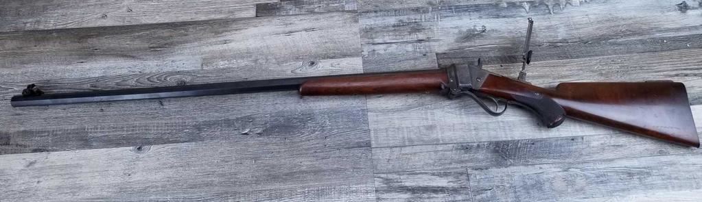VINTAGE REAR SIGHT. DOES HAVE CRACK IN PISTOL GRIP. SOME PITTING ON BARREL. TRACES OF ORIGINAL CASE COLORING ON RECEIVER. BORE IS VERY GOOD.