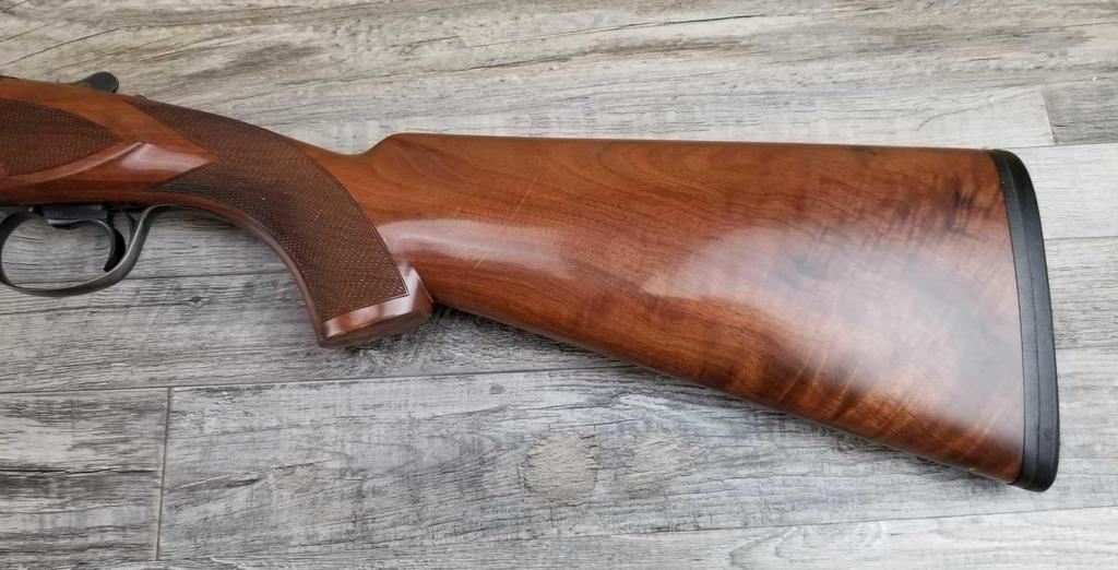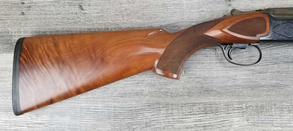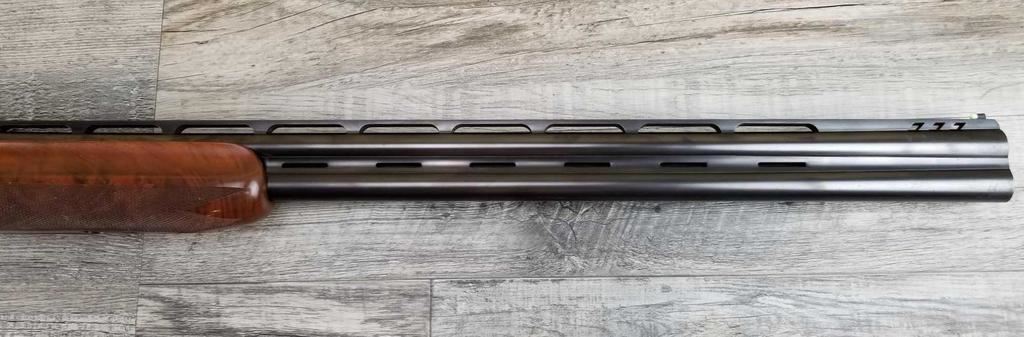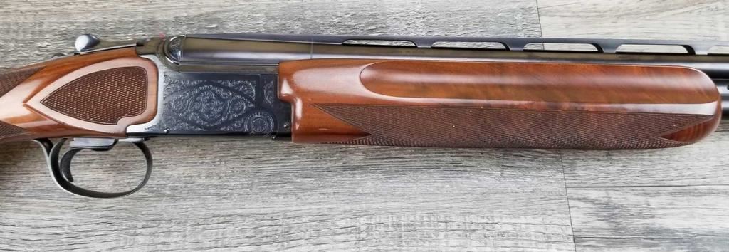 EXCELLENT WOOD. SOME LIGHT SCRATCHES AT BOTTOM BARREL END ONLY. MINT BORES. SCREW IN CHOKES. SET AT FULL AND MOD. COMES WITH ONE EXTRA CHOKE.
