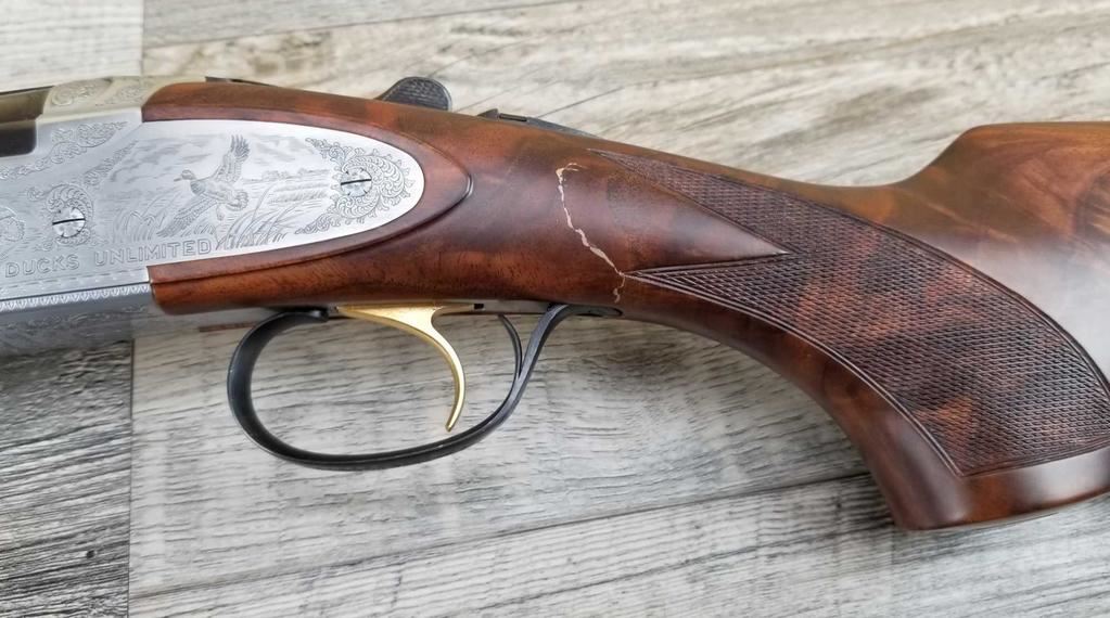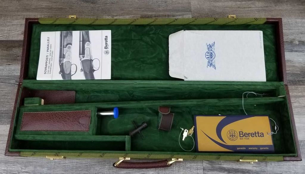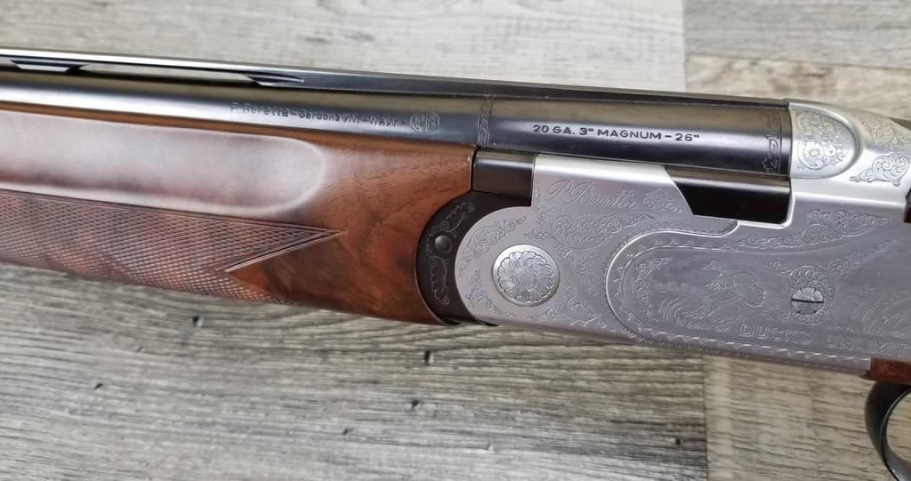 DUCKS UNLIMITED. HEAVILY ENGRAVED RECEIVER. STOCK APPEARS TO HAVE BEEN BROKEN AND REPAIRED. MINT BORES. FULL AND MOD CHOKES. IN BERETTA CASE.
