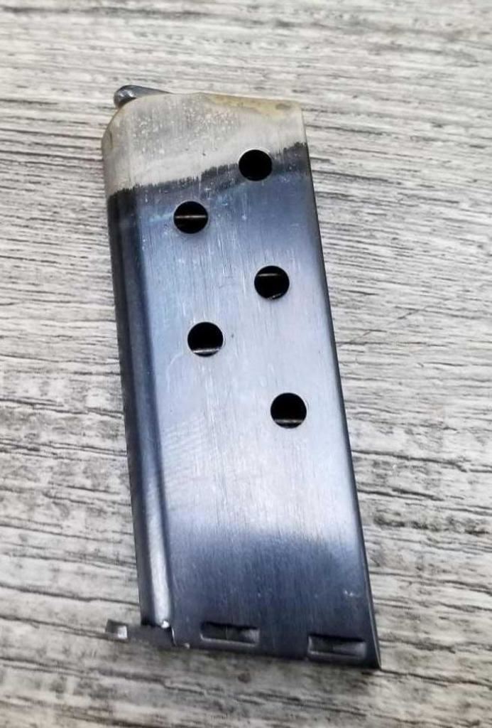 SHOWS SOME HOLSTER WEAR. GOOD CASE COLORING. MOST ORIGINAL BLUE REMAINS. BORE VERY GOOD.