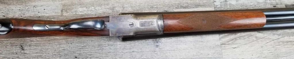 SOME BLUEING LOSS TO BARRELS. NICE CASE COLORING REMAINS ON RECEIVER. NO VISIBLE CRACKS IN WOOD. BRIGHT BORES. CHOKES ARE FULL MOD.
