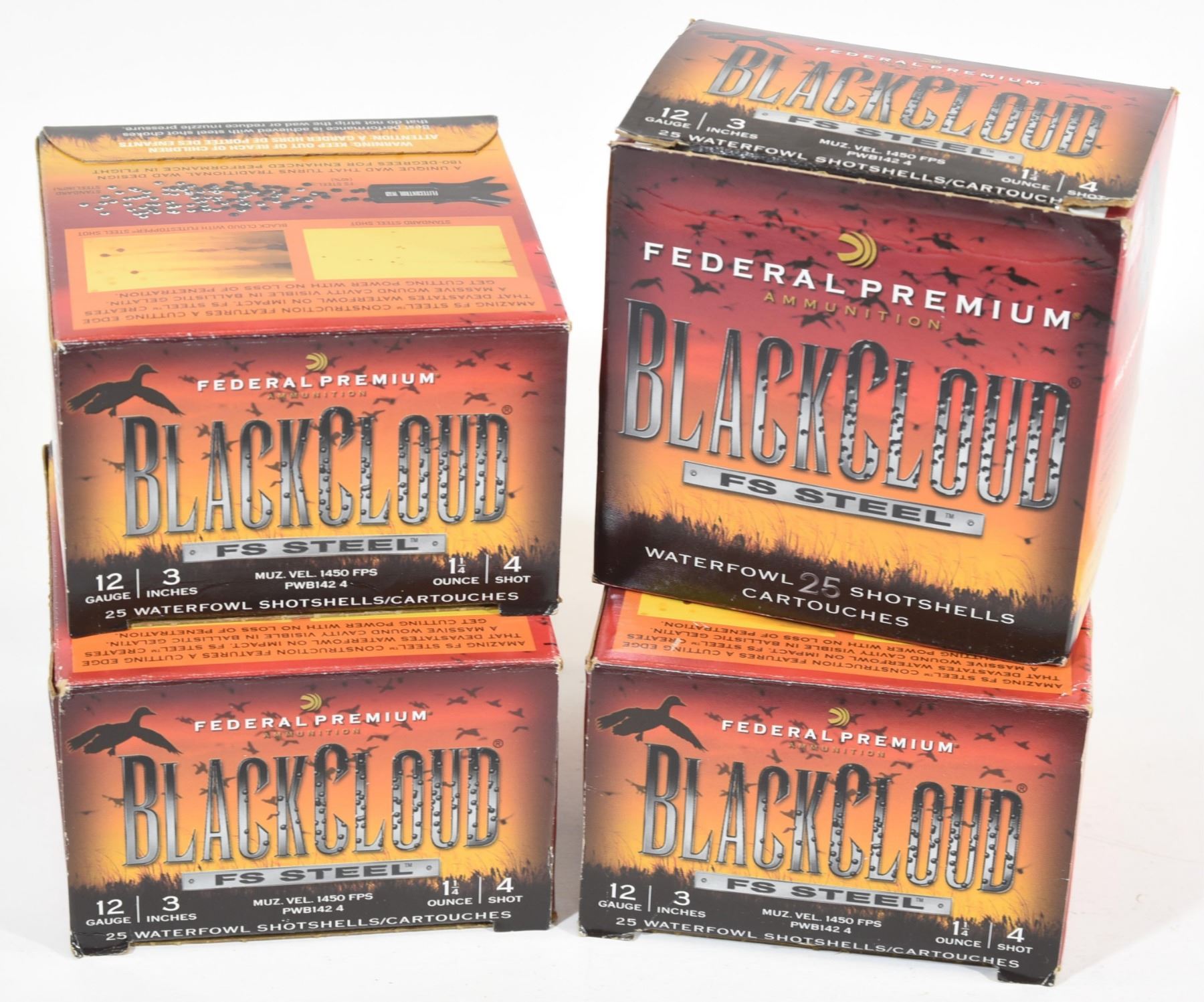 4 full boxes of Federal Black Cloud FS Steel 12ga 3" #4.