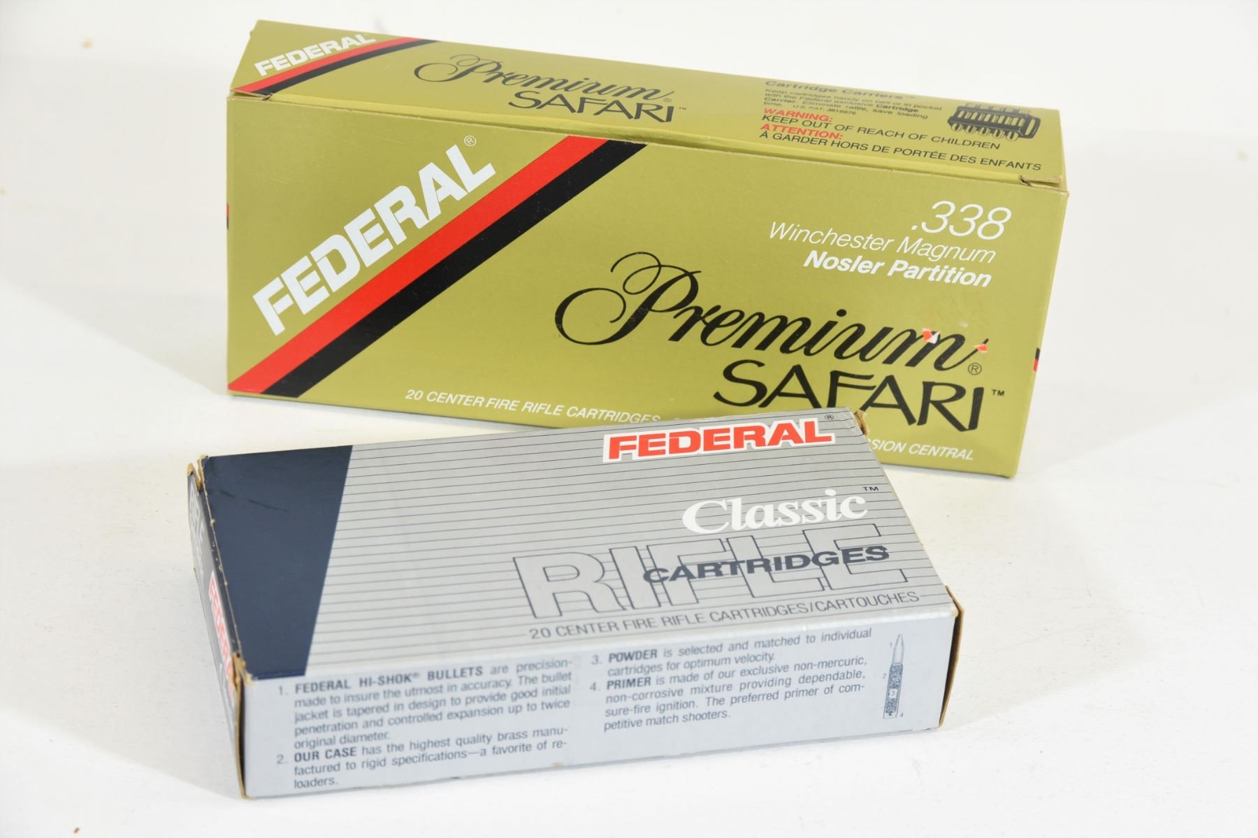 20 rnds. Federal Classic 225 gr. hi shock sp and 20 rnds. Federal Premium Safari 210 gr. nosler partition.