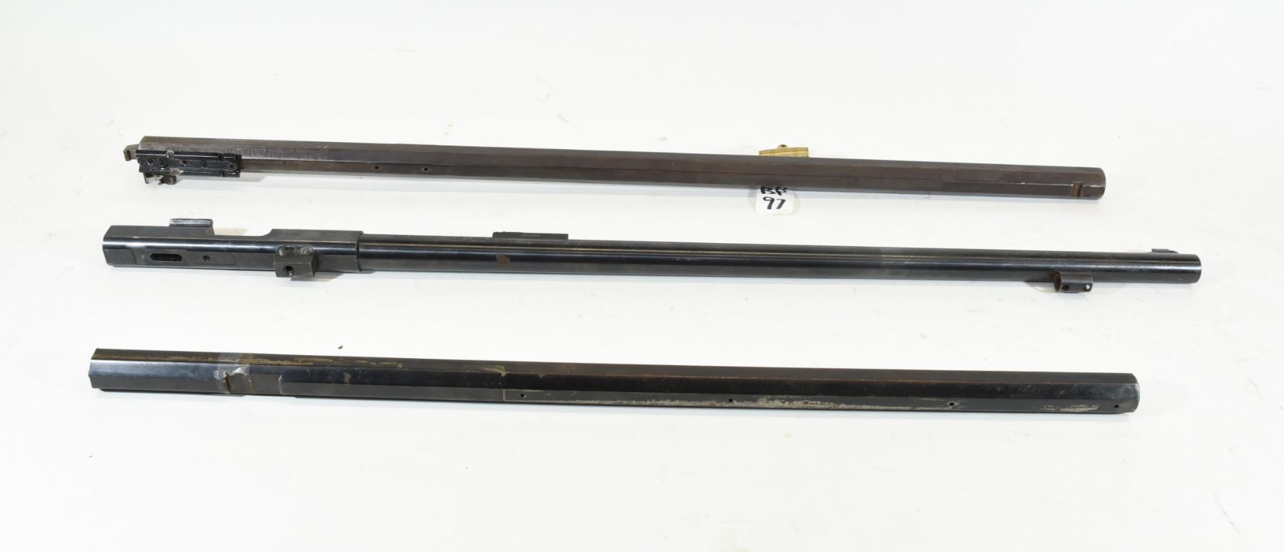 Modern Muzzle Loading Black Knight MK 85 Barrel, 59 cal. Bore is in poor condition. Italian Hawken Barrel, 54 Cal. Bore is in poor condition. Italian Hawken Barrel. Has been shortened, 50 Cal, Bore is fair.