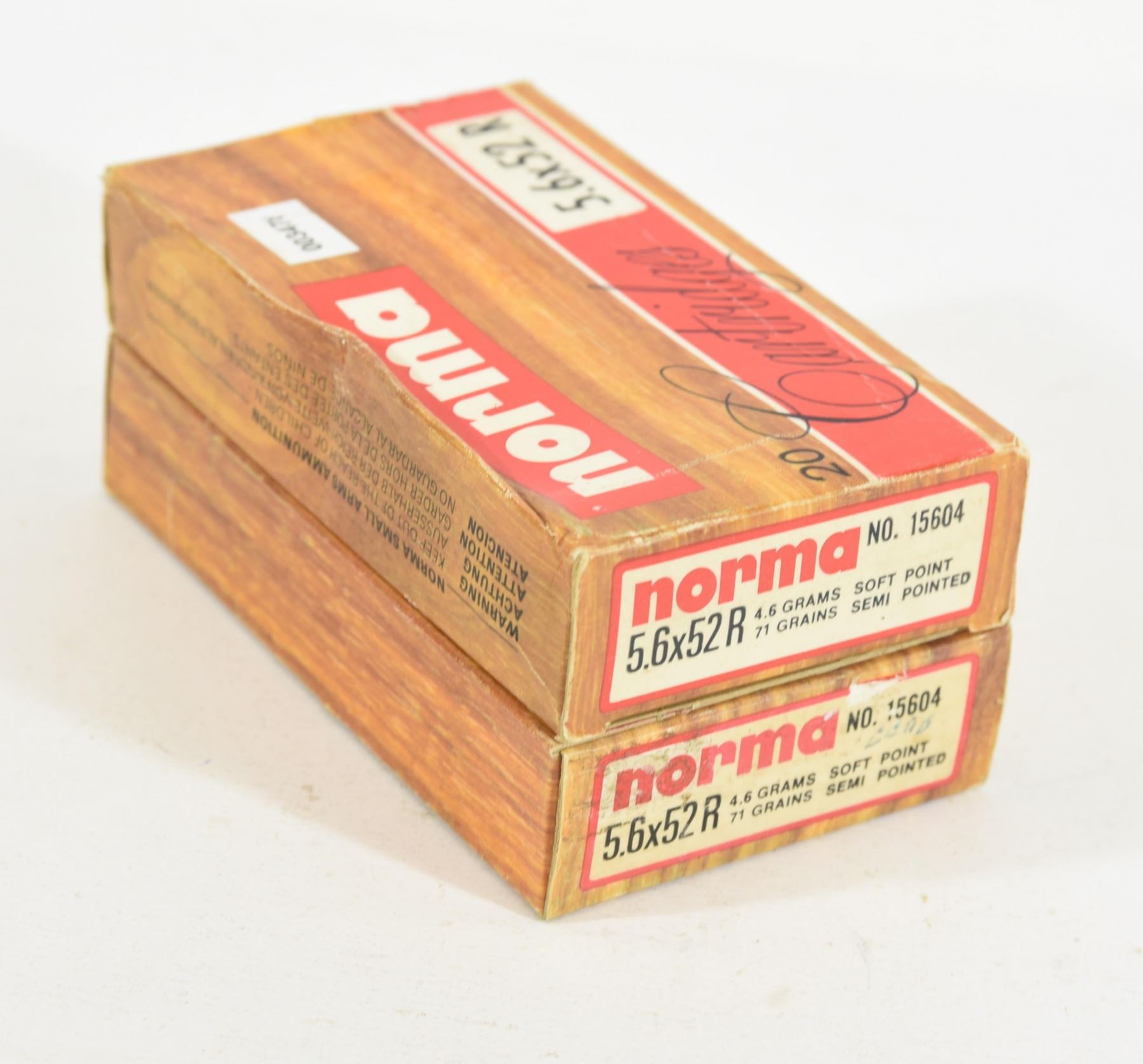 Two 20 round boxes of Norma 5.6x52R71gr Semi-Pointed soft point ammunition.