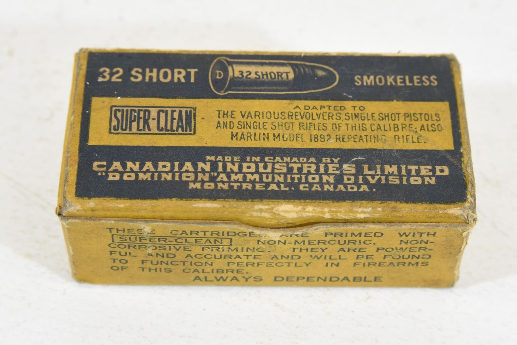50 round box of CIL Super-Clean 32 Short 82gr greased ammunition.