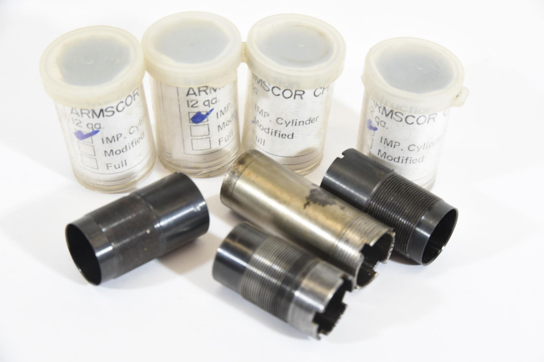 1) 6 Armscor chokes, 4 imp. cyl., 2 full for squires Bingham etc. 2) 1 unknown imp. cyl. 3) 1 Baretta mod.