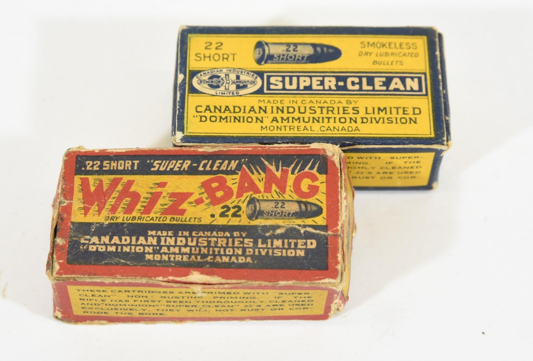 50 round box of CIL Whiz-Bang Super-Clean dry lubricated 22 short ammunition. 50 round box of CIL Super-Clean smokeless dry lubricated 22 short ammunition.