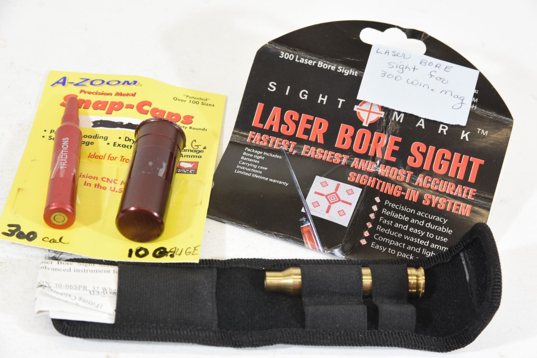 300 Cal snap cap. 10ga snap cap. 300 Cal laser bore sighter.
