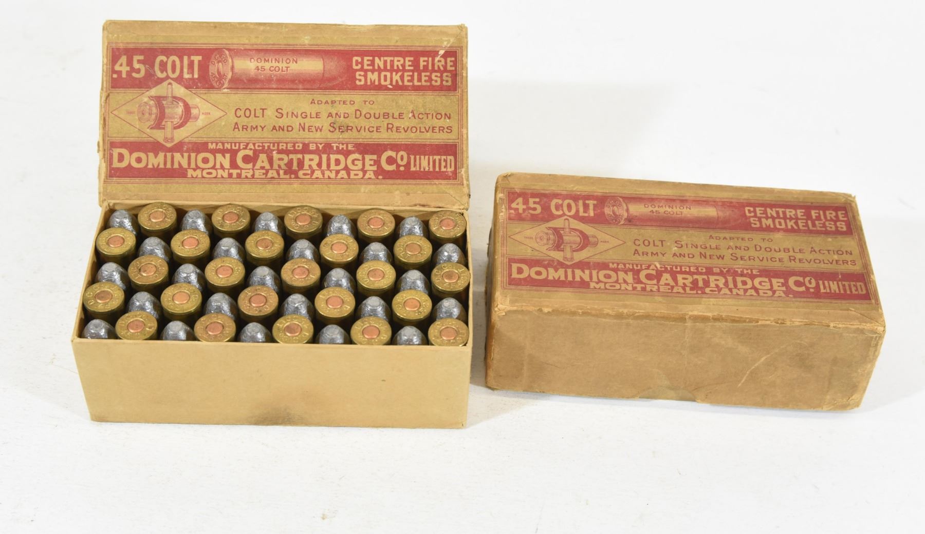 100 rnds. in two vintage Dominion boxes that are in good condition.