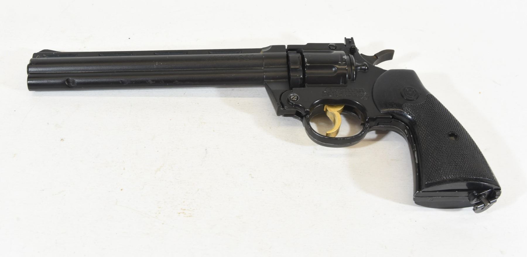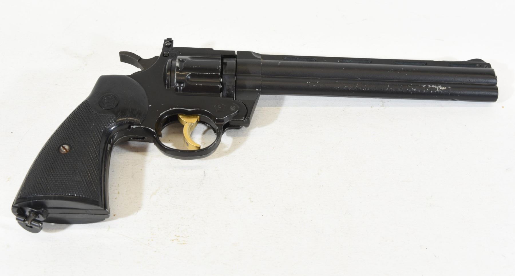 357 Mag., 6 shot CO2 powered. No PAL required. Paint chipping off in a few spots, barrel locking mechanism needs tightening, unknown functionality.