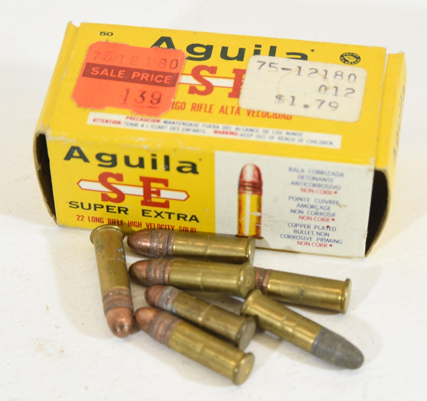 44 round box of Aguila Super Extra 22 LR High Velocity Solid ammunition. 7 loose rounds of 22 LR ammunition.