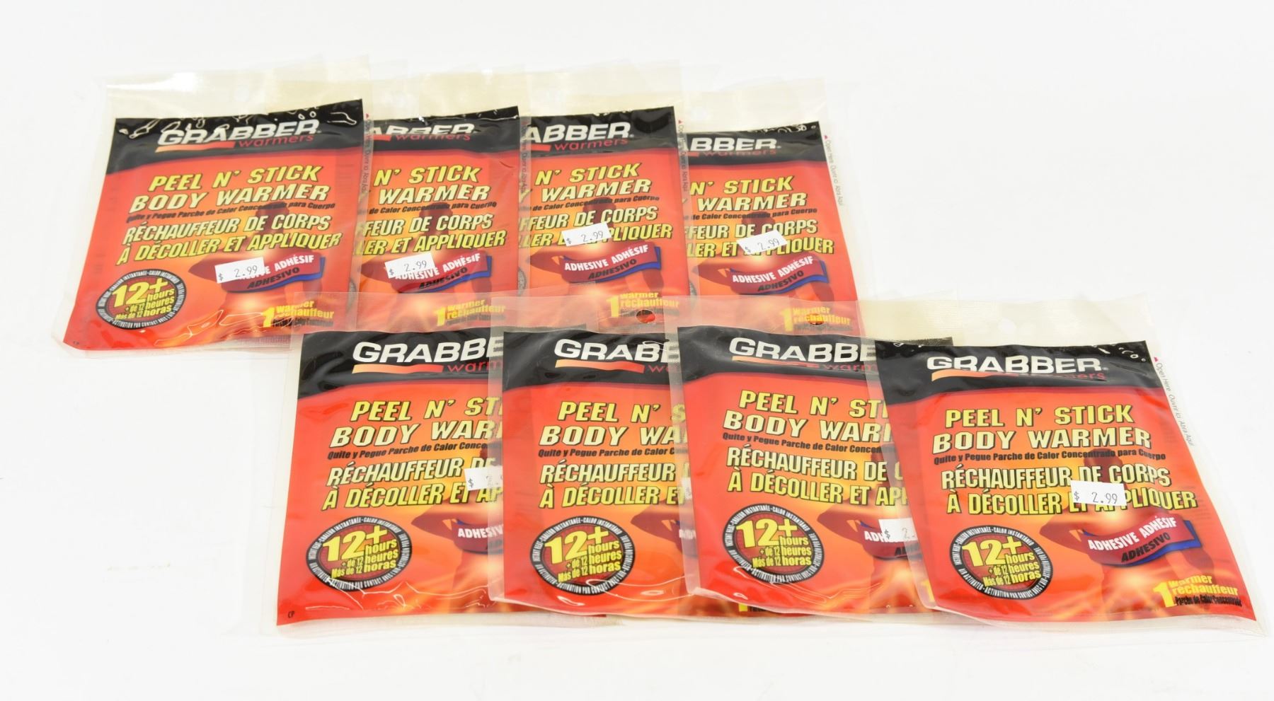 8 Grabber Warmers Peel N' Stick Body Warmer. Expiry date of Jan, 2019. Warmers still work.