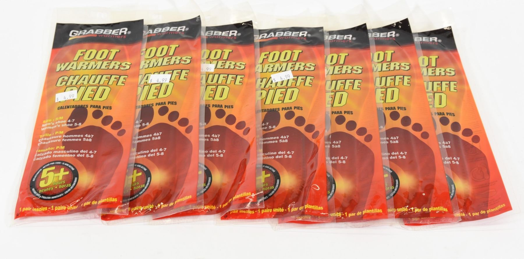 6 Grabber Foot Warmers in size S/M. Expiry date of Nov, 2018. Warmers still work.