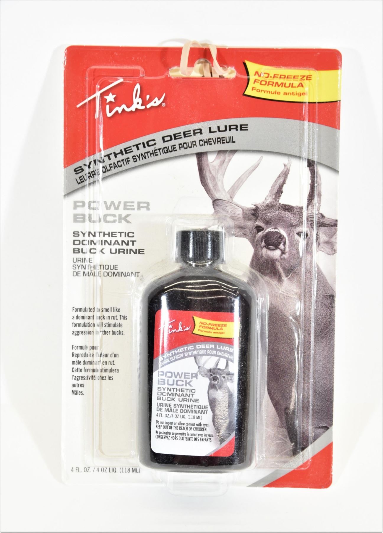 Bottle of Tink's Power Buck Synthetic Deer Lure. New in package.