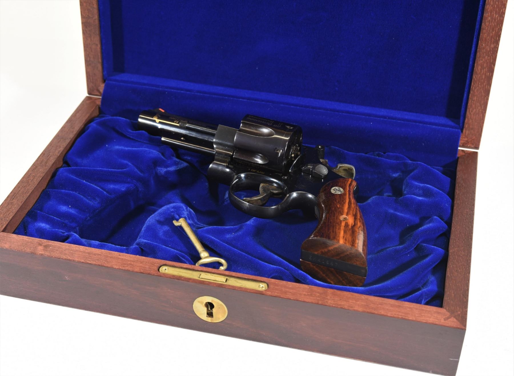 Prohibited, revolver, 44 Magnum, 102mm barrel, SN EMK1557. New in wooden display case. 1 of 2500 commemorative.