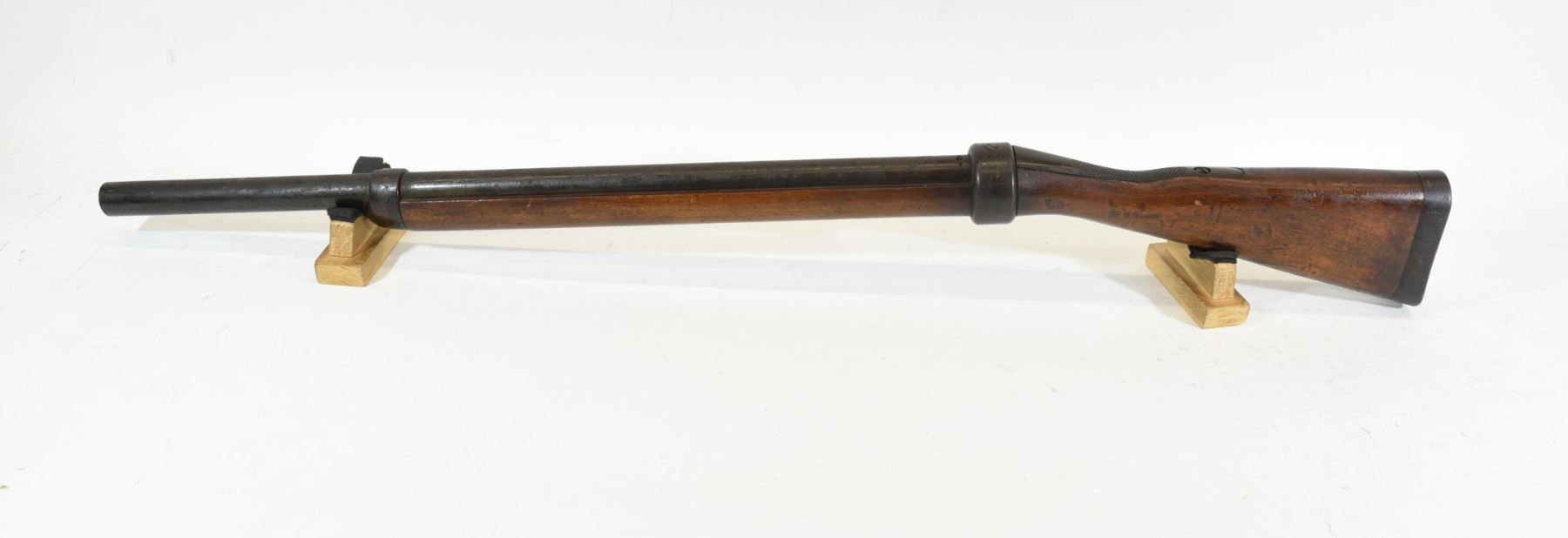 Antique, Westley Richards fencing musket Wood stock has typical age marks. Bluing gone brown and acquired patina. SN none.missing spring loaded plunger that came out of barrel, these were used for bayonet training
