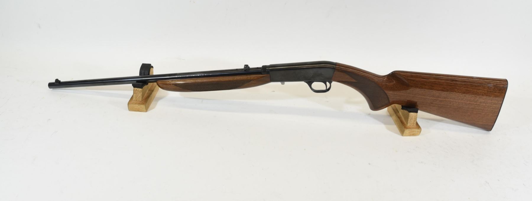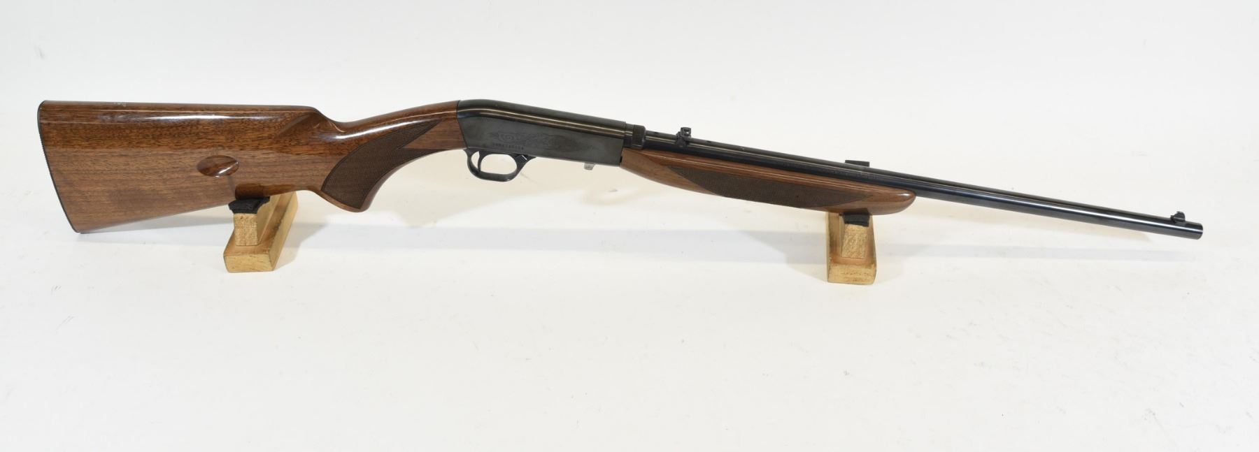 Non-Restricted, Browning SA-22 Semi-Auto 22LR Rifle. Wood stock is in good condition with 3 small marks on the top of butt stock. Bluing has 2 small scratches and one patch of patina speckling. Bore is excellent. S/N 100A143124.