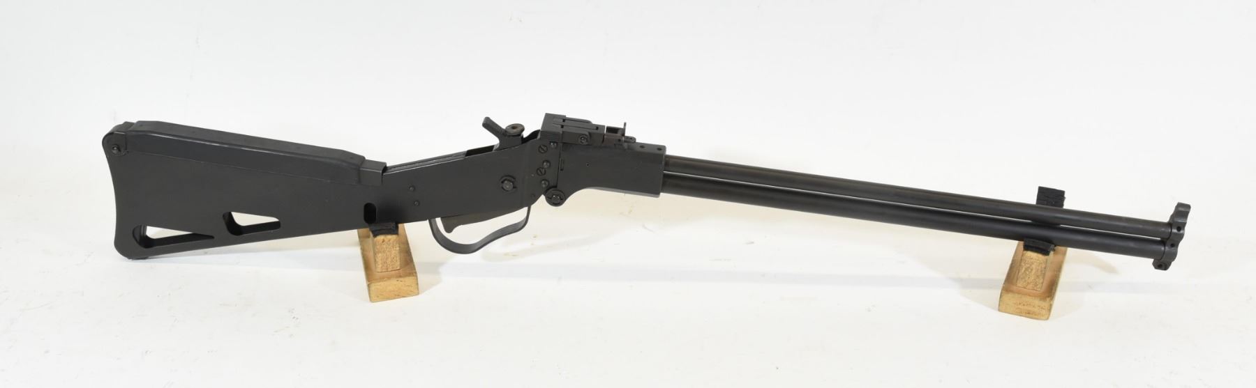 Non-restricted, multi-barrel O/U combo, 22 lr over 410, 18" barrels. SN M 10593. Metal stock and matte bluing are in very good condition, bores are excellent.