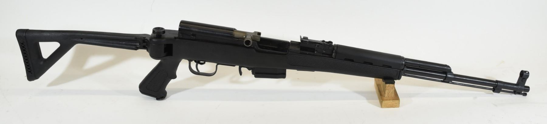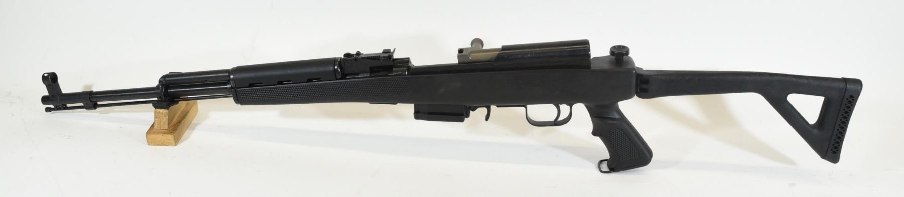 Non-restricted, semi-auto, 7.62 x 39, 20" barrel. SN 41714. Synthetic folding stock very good, bluing has pit marks and scratches, bore excellent.