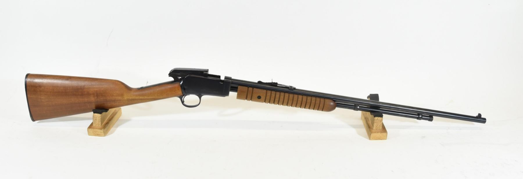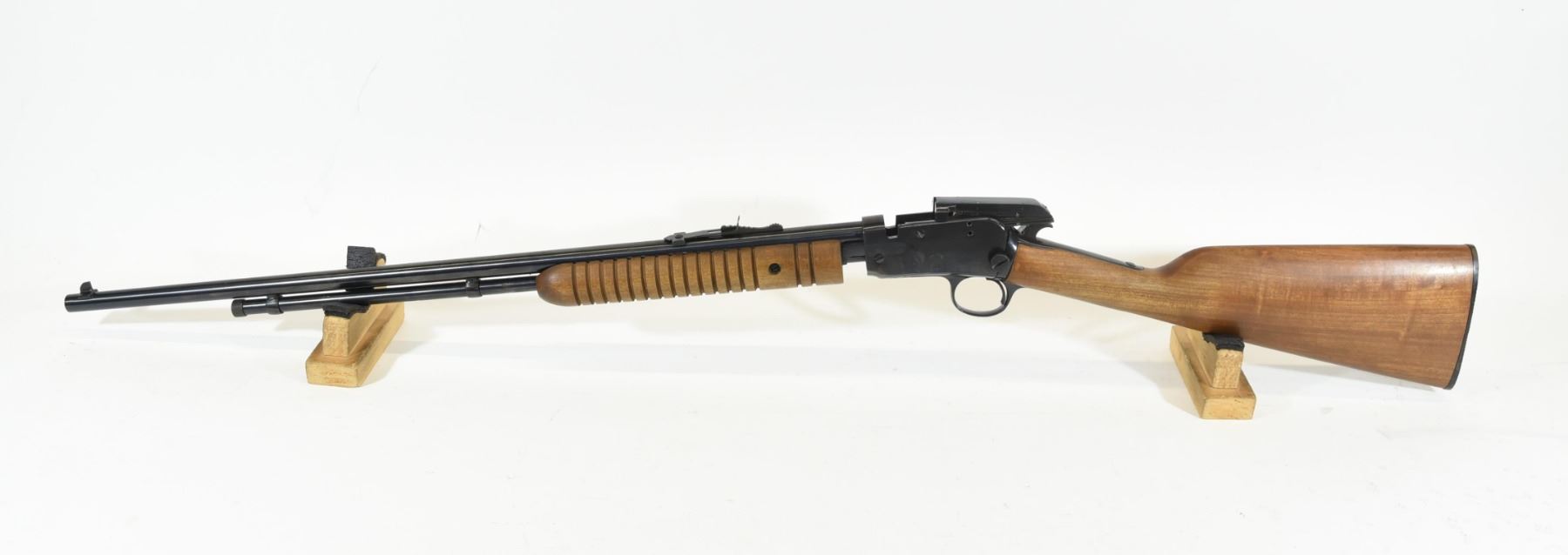 Non-restricted, pump action, 22 Magnum, 23" barrel. SN H009441. Excellent condition.