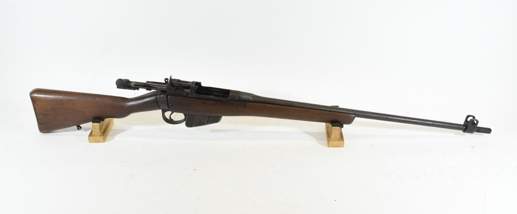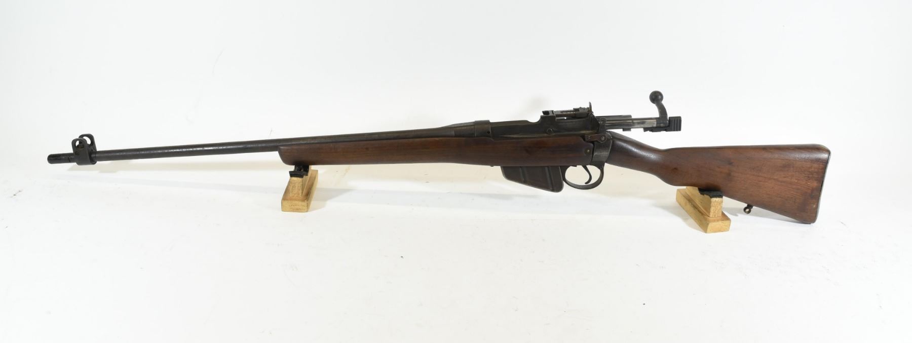 Non-restricted, bolt action, 303 British, 25" barrel. SN MB20822. Wood has scratches and a few marks, bluing is grey with light pitting covering barrel, bore has pit marks.