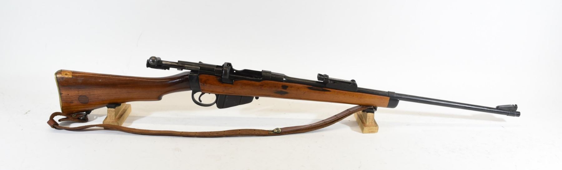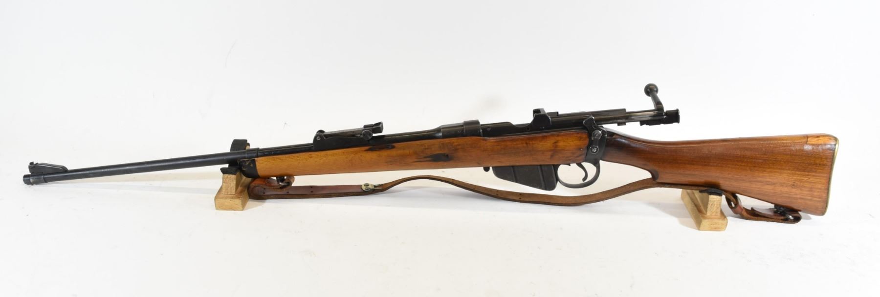 Non-restricted, bolt action, 303 British, 25" barrel. SN V4708. Wood has some repairs, bluing has scratches along barrel, bore stained with good rifling.