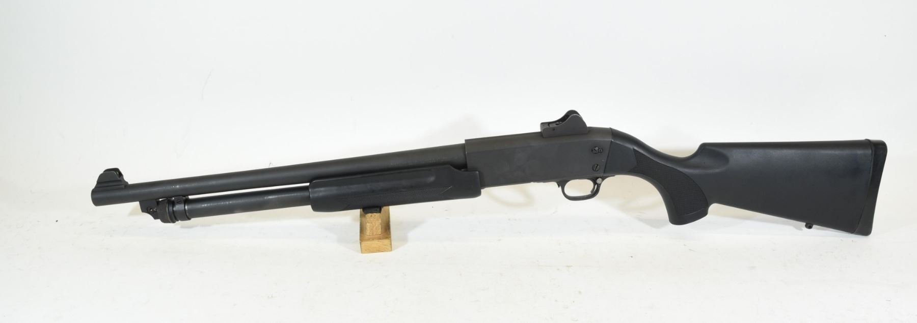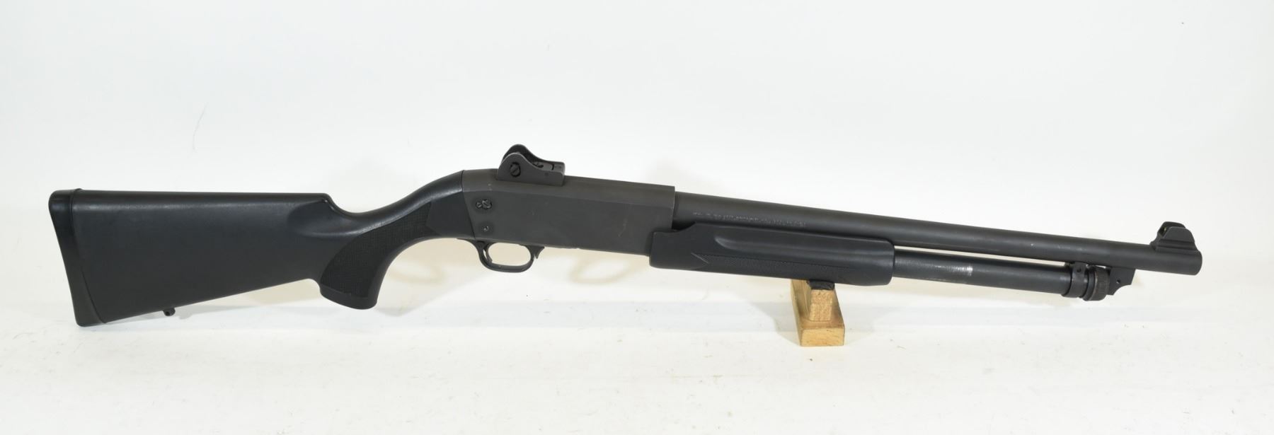 Non-restricted, pump action, 12Ga x 3", 18 1/2" barrel with fixed open choke, SN 110040F.Synthetic stock has a couple marks, bluing has some light scratches, bore excellent.