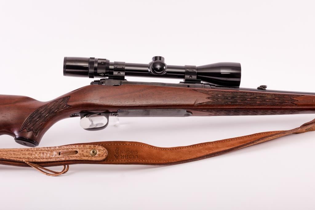 Savage Model 110 DL Series J, left handed Bolt Action Rifle S/N A856658. In 7mm Rem mag cal. mounted, with Bushnell 3x9 scope, with folding rear sight. The stock lengthen ½” to 15” (end of pad). In very good plus usedcondition and hard to find, quick detachable swivel with sling. Est.: $300-600.