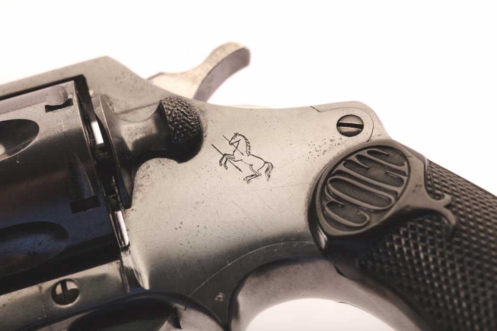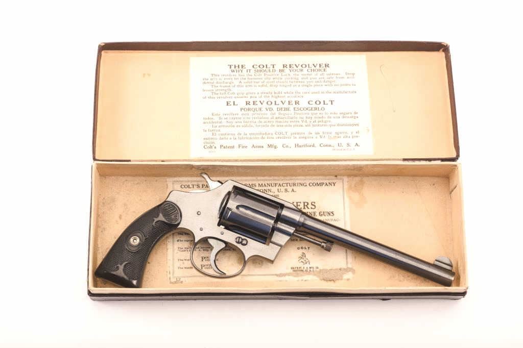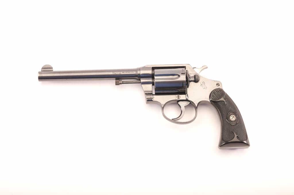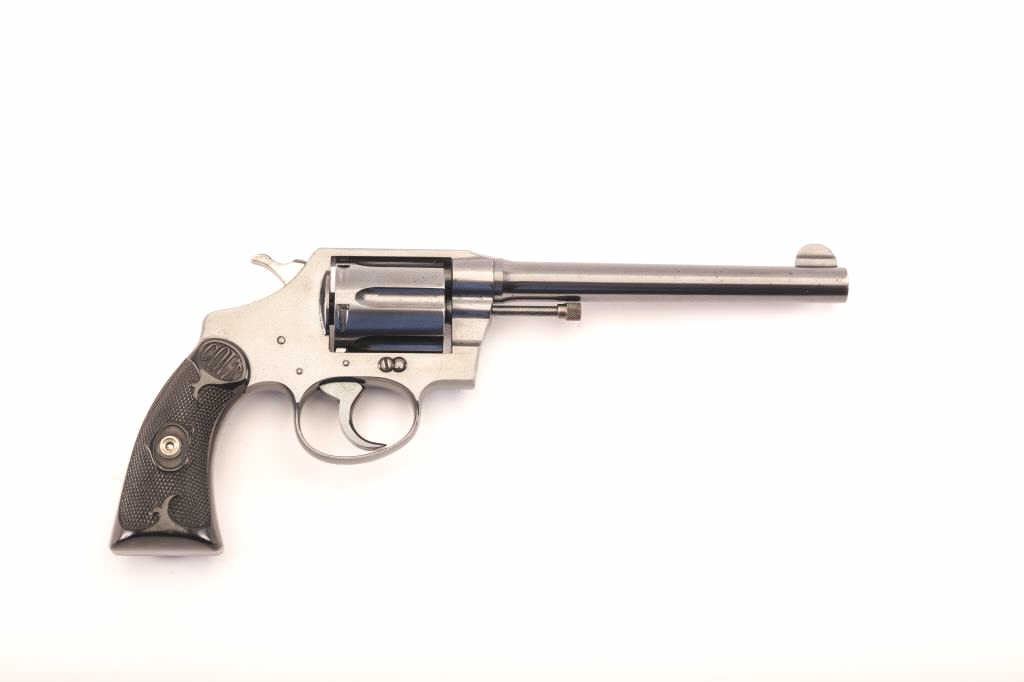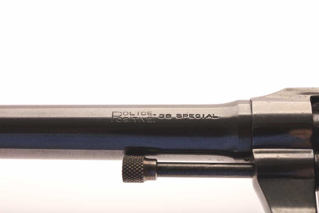 Colt Police Positive 38 Special caliber, with 6” barrel double action revolver. In excellent condition. Serial # 19116. Has 97-99% original blue with fine hard rubber grips. Pristine bore and action. Gun is a 9.5 on a 1-10 scale. Est.: $600-1,200.