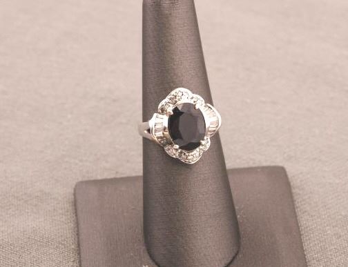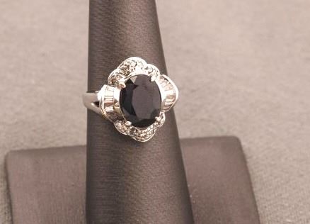 One beautiful oval sapphire weighing approx 4ct and 0.47ct of fine diamonds set in a 18k white gold mounting Est:$2000-4000