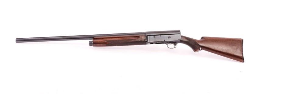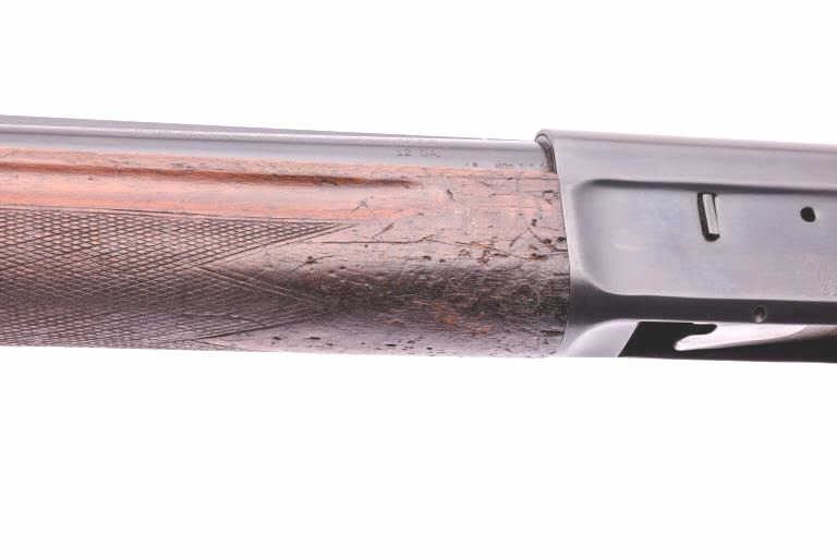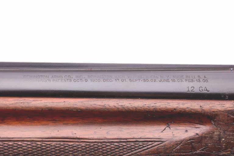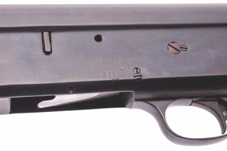 Remington Model 11 semi-automatic shotgun, 12 gauge, 28” barrel, blued finish appears to be an old re-blue, checkered wood stocks, S/N 373265; overall good condition with good bore, crisp action, wood butt stock is goodoverall, fore stock shows scattered old dings and mars at rear bottom and rear left side. (Modern). Est.: $125-$250.