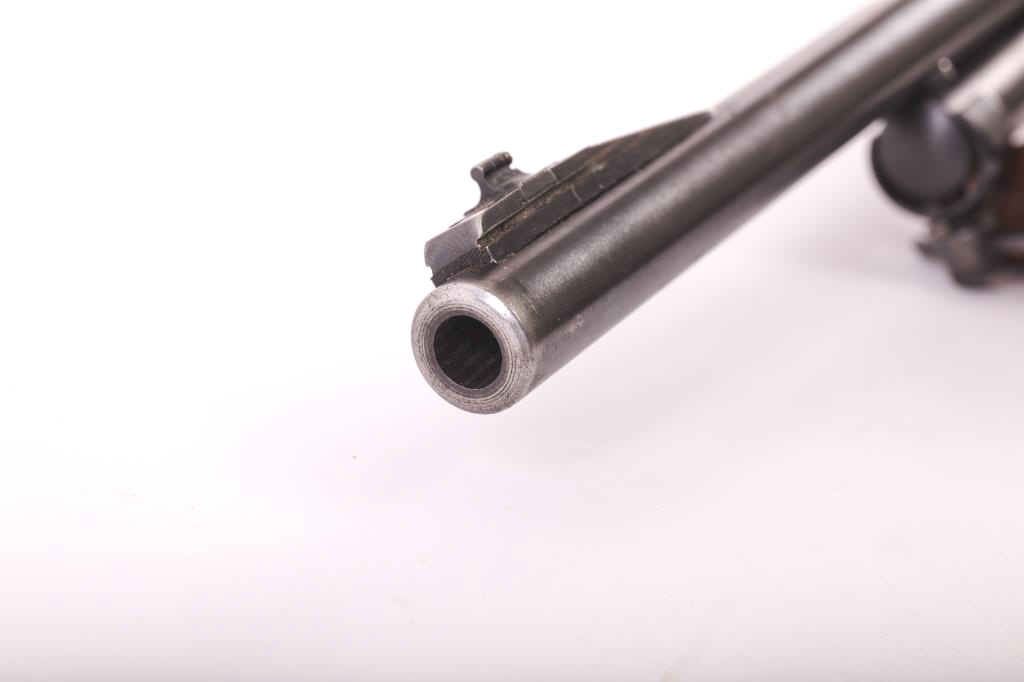 Marlin Model 336 SC lever action carbine, .35 Remington caliber, Serial #R10975. The carbine is in good overall condition with a 20” barrel and half magazine. The metal surfaces retain the majority of their mutedblue finish with wear at the muzzle and high point edge wear. The top of the receiver has been drilled and tapped for a scope mount. The smooth wood stock is in good condition with small mars and compressions consistentwith field use. The butt stock ends with a Marlin marked plastic butt plate and includes sling swivels and a period leather sling. The bore is good, the action is crisp and the markings are sharp on this Marlin SportingCarbine in the venerable .35 Remington cartridge. Est.: $300-$600. (C+R).
