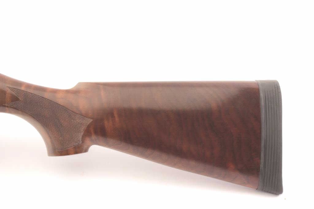 Benelli Montefeltro Super 90LH semi-automatic shotgun, 12 gauge, Serial #M376245. The shotgun is in fine overall condition with a 28” barrel with a full-length ventilated rib. The metal surfaces retain nearly all oftheir blue finish with light handling marks associated with field use. The barrel is marked for 2 ¾” or 3” shells. The checkered wood stock is in very good condition with small mars and storage marks. The butt stock ends with a Limb saver rubber pad providing a 14 ¼” LOP. The bore is good, the action is crisp and the markings are sharp on this left handed Benelli. Est.: $500-$1,000. (Modern).