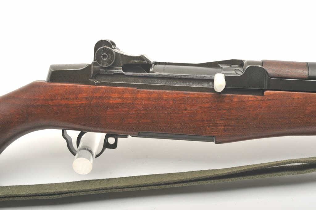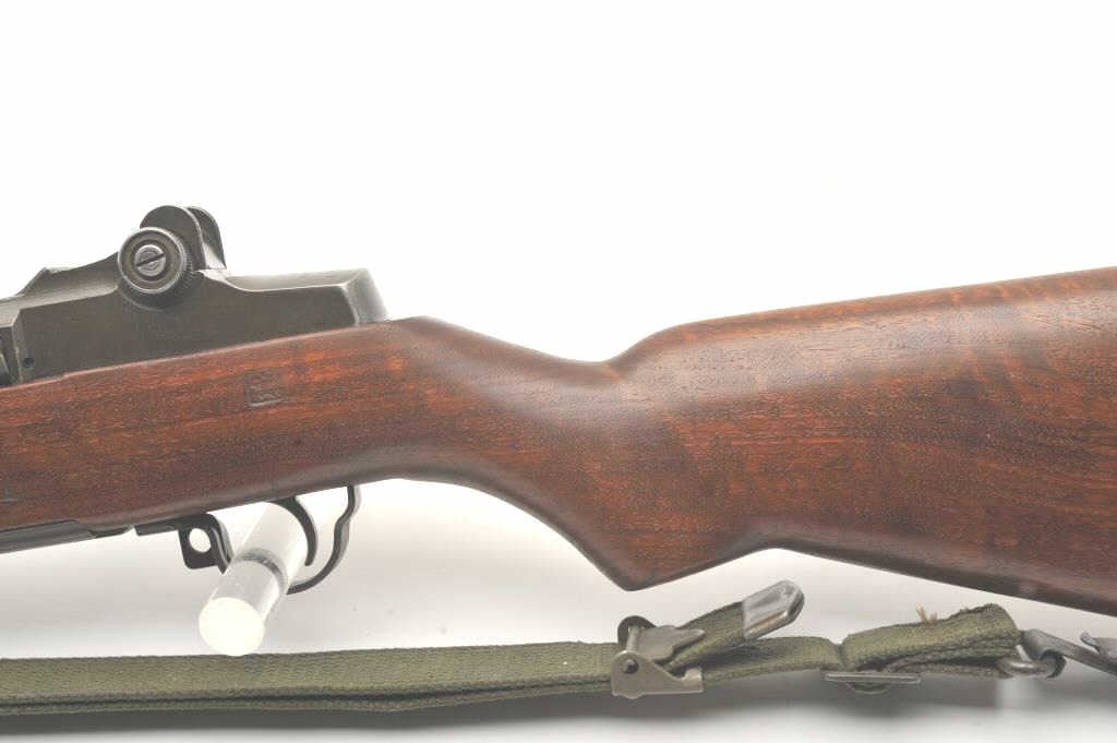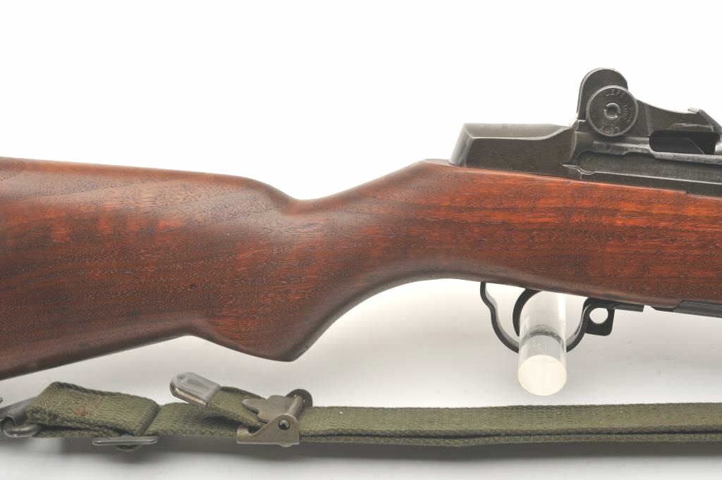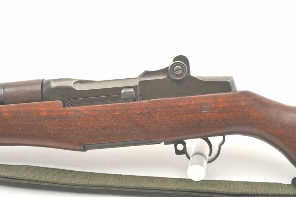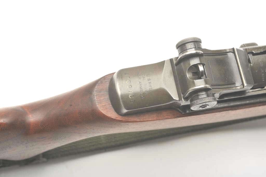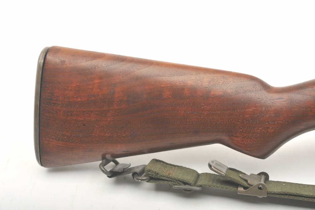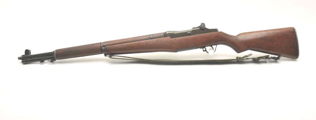 U.S. M1 Garand semi-automatic rifle by Harrington & Richardson Arms Co., .30 caliber, 24” HRA barrel dated 5-54 (per consignor TE=3.25 MW=2.0), military finish, wood stock and green woven sling, S/N4768406; overall very good to near fine condition with majority of military finish to metal parts remaining, very good + bore, crisp action, sharp markings and very good + wood stock showing circle P proof and threestars over eagle cartouche. (C&R). Est.: $2,000-$2,400.