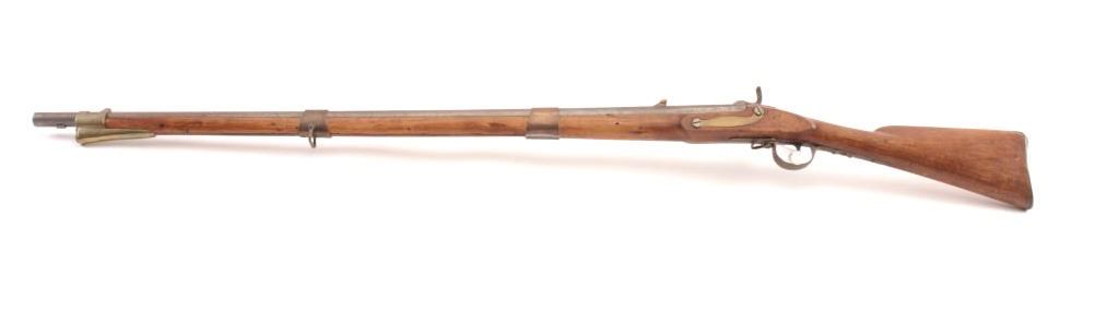 Northern European, possibly Swedish musket dated 1844 with H on the lock, brass mounted, percussion, with 40" barrel, 57" overall, 3 barrel bands, #2232. Overall good to very good condition, action working at time ofdescription. Stock is very good. (Antique) Est. $200-400