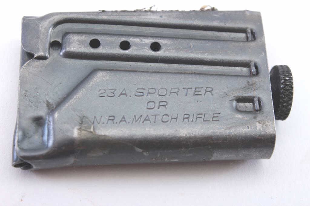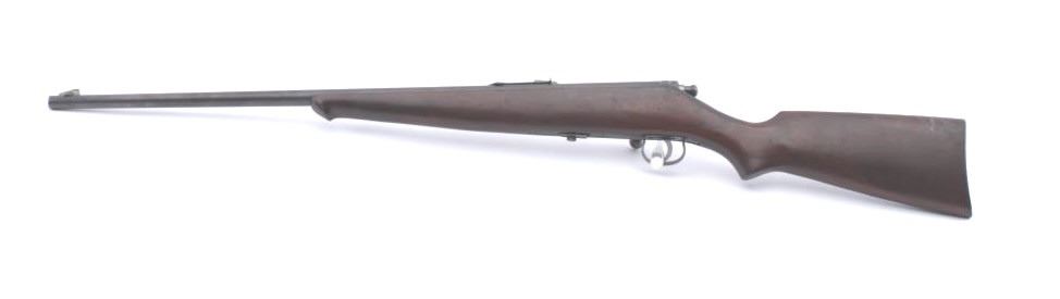 Savage Sporter Model bolt action rifle, .22 caliber, 23” barrel, blued finish, wood stock, S/N 52479; overall good condition showing a pleasing even plum brown patina to metal surfaces, good markings, crisp action,fair bore and good stock. (Modern). Est.: $75-$150.