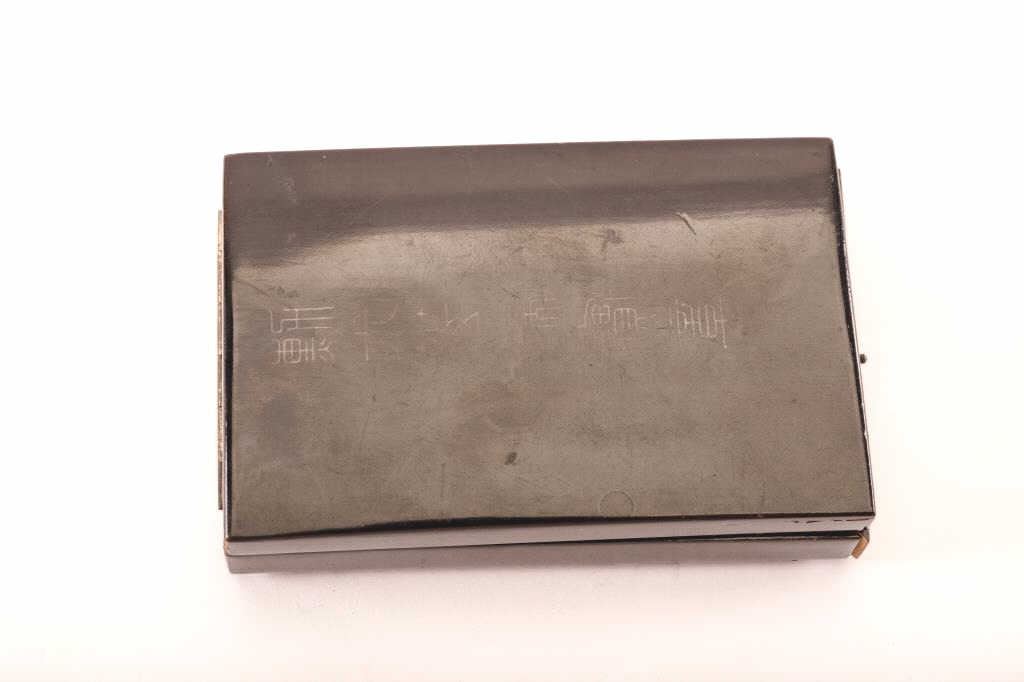Japanese military badge and ribbon in lacquered wood box; very good condition. Est.: $30-$40.