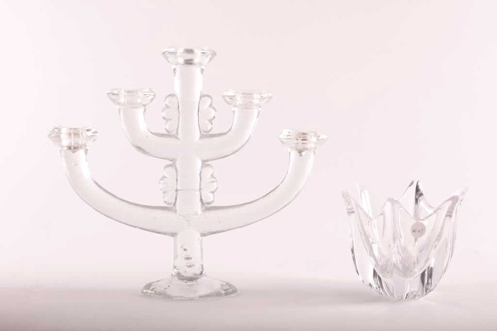 One modern Swedish art glass 5 candle holder by Pukeberg, retail $300 and Orefors vase both signed Est:$150-300